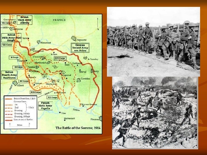 1916 n BATTLE OF THE SOMME (JULY-NOV) n n n The British attacked with an advantage of 6: 1. Highest casualty rate in one day of both world wars. 60, 000 men killed in the first day of battle. The British introduced the tank in battle. Casualties: n n 500, 000 German 400, 000 British 200, 000 French Net Gain: 7 miles