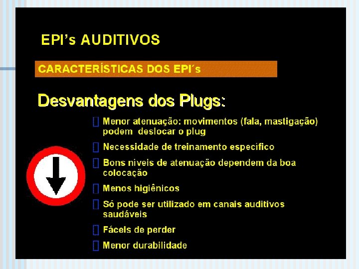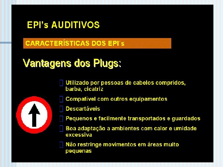 Controle do ruído O trabalhador deve obrigatoriamente usar o EPI – equipamento de proteção individual: Plug de inserção ou Concha