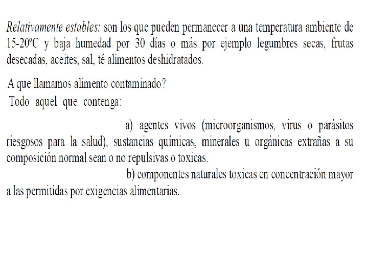 LOS ALIMENTOS PUEDEN SER CAUSA DE ENFERMEDAD: 1 • Porque contengan elementos tóxicos o venenosos (algunas setas por ejemplo). 2 • Porque durante la producción o elaboración se han contaminado con sustancias tóxicas, como por ejemplo los vegetales tratados con pesticidas. 3 • Porque existan gérmenes o parásitos, como puedan ser carnes de animales infectados o vegetales regados con aguas contaminadas (fecales).