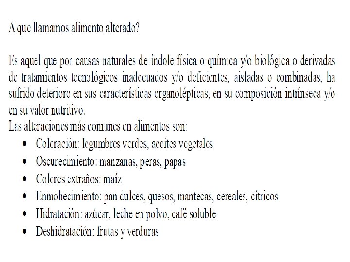 TERMINOLOGIA UTILIZADA Higiene de los alimentos: Todas las condiciones y medidas necesarias para asegurar la inocuidad de los alimentos en todas las fases de la cadena alimentaria. Idoneidad de los alimentos: La garantía de que los alimentos son aceptables para el consumo humano, de acuerdo con el uso a que se destinan. Inocuidad de los alimentos: La garantía de que los alimentos no causarán daño al consumidor cuando se preparen y/o consuman de acuerdo con el uso a que se le destinan.