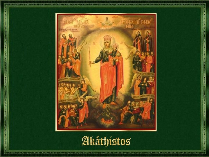 Himno en honor a la Santísima Virgen María del siglo VII ó VIII. Cuando el enemigo oye el Akathistos huye furioso.