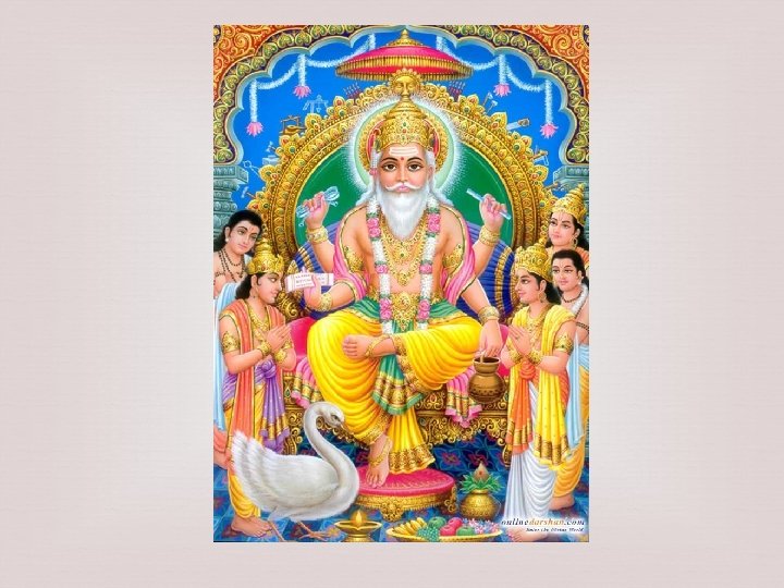 Brahma är den gud som skapar liv. Han sitter ofta på en lotusblomma och han rider på en svan.