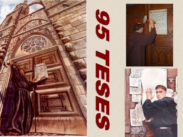 Movido pelo amor e pelo empenho em prol do esclarecimento da verdade discutir-se-á em Wittemberg, sob a presidência do Rev. padre Martinho Lutero, o que segue. Aqueles que não puderem estar presentes para tratarem o assunto verbalmente connosco, poderão fazê-lo por escrito. Em nome de nosso Senhor Jesus Cristo. Amém. 1º Dizendo nosso Senhor e Mestre Jesus Cristo: Arrependei-vos. . , certamente quer que toda a vida dos seus crentes na terra seja contínuo arrependimento. 2º E esta expressão não pode, e não deve, ser interpretada como referindo-se ao sacramento da penitência, isto é, à confissão e satisfação, a cargo do ofício dos sacerdotes. 3º Todavia não quer que apenas se entenda o arrependimento interior; o arrependimento interior nem mesmo é arrependimento quando não produz toda a sorte de modificações da carne.