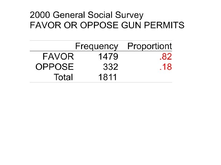95% Confidence Interval for the percent in favor We can be 95% confident that in the population 82% plus or minus 1. 96% favor gun permits