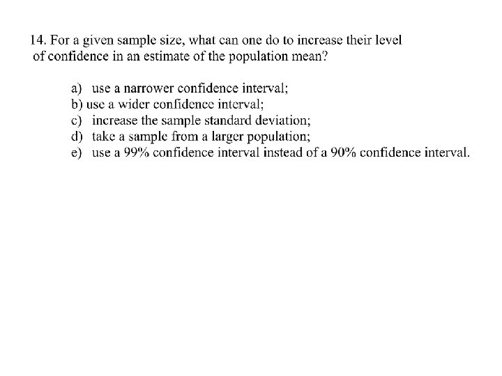• Confidence interval and confidence level 90% confidence 95% confidence 99% confidence
