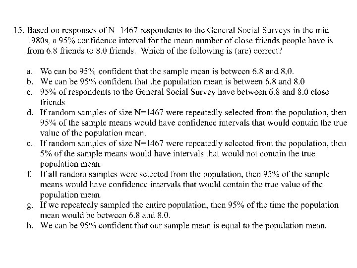 Another Confidence Interval Example • Do a majority of adults in the US like classical music? • How confident can you be of that conclusion?