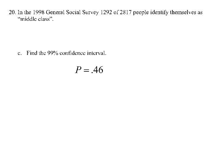 99% confidence interval is from. 43 to. 49 identifying as middle class I’m 99% confident ……