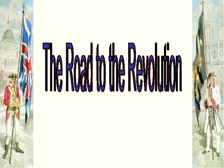 Road to the Revolution Activity • Draw a road leading to an endpoint marked “Revolution” – Along the road, mark spots for 5 major causes • French and Indian War • Proclamation of 1763 • Stamp Act • Intolerable Acts • Common Sense • For each: – – Name of event 2 Sentence Summary How it led to war? Picture