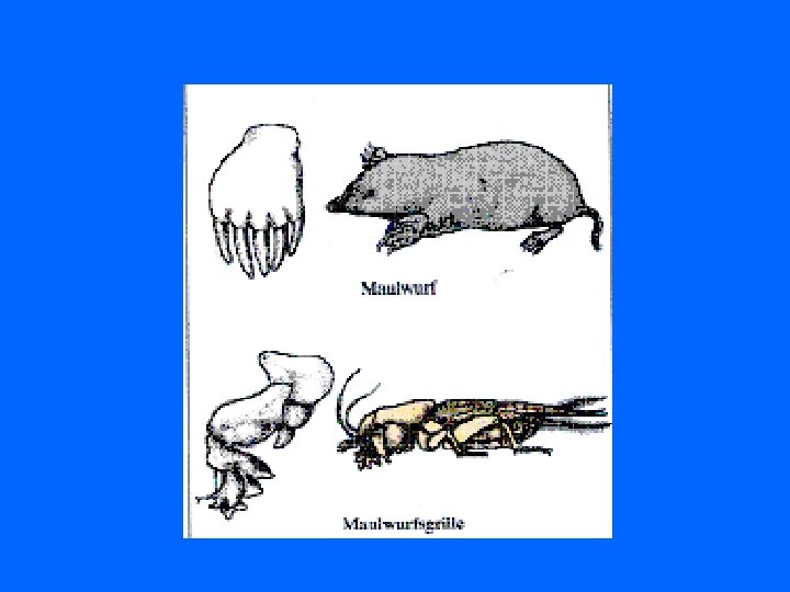 Analogie: • = Ähnlichkeit, die auf Funktionsgleichheit beruht • Sie ist die Folge der Anpassung an ähnliche Umweltbedingungen (konvergente Entwicklung). • Analogie erlaubt keine Aussage zur Stammesverwandtschaft