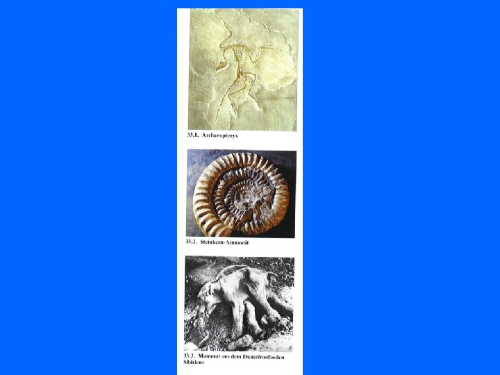 Fossilienfunde: • Tote Tiere werden durch Fäulnisbakterien, Verformung und Verwitterung der Erdkruste zerstört Mit zunehmendem Alter der Gesteinsschichten findet man immer weniger Fossilien, bis sie in den ältesten Gesteinen ganz ausbleiben. Da das Auffinden von Fossilien von vielen Zufällen abhängt, schätzt man alle bisherigen Fossilienfunde auf nur etwa 1% aller Arten, die jemals auf der Erde gelebt haben. Der Zersetzungsprozess kann z. B. durch Sand oder andere Ablagerungen (Sedimente) verhindert werden. Fossilien findet man deshalb vorwiegend an Orten rascher Sedimentation, z. B. in Sümpfen, Mooren, Seen oder Flachmeeren, aber auch in Höhlenablagerungen.