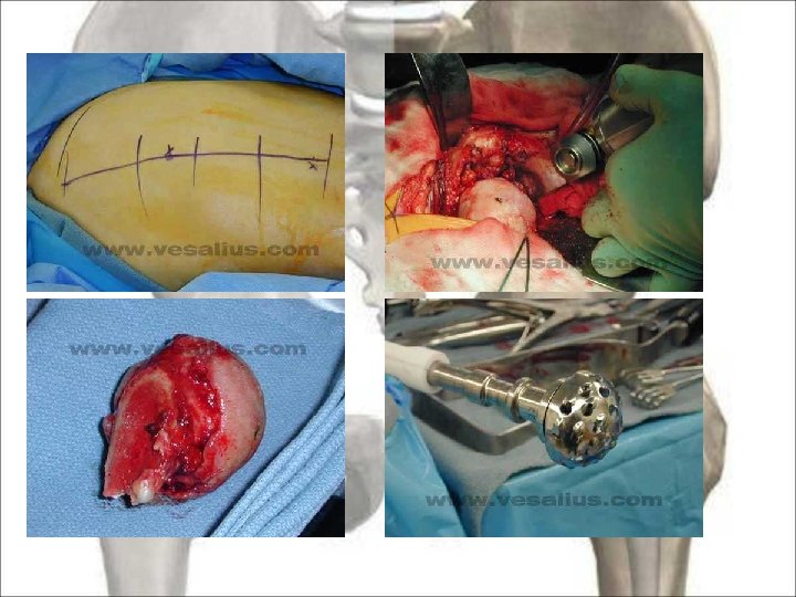 Resurfacing • New Alternative – Acetabulum and Femoral Head. – Preserves the femoral neck and avoids exposing the femoral canal. – Unsuccessful early with liner use, now all metal – In use for about 10 years. – Usually less than 55. – If not had deformity due to arthritis.