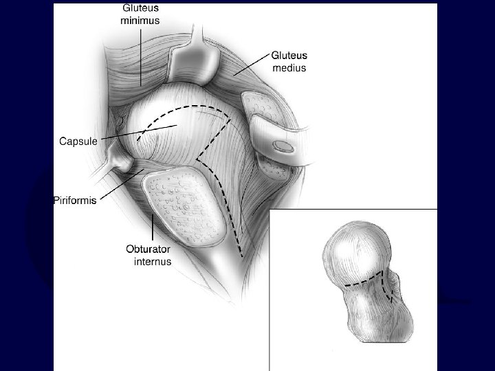 1. Irreducible Hip Dislocation: Anterior Smith-Peterson approach • Watson-Jones is an alternate approach 1. Allows visualization and retraction of interposed tissue. 2. Placement of Schanz pin in intertrochanteric region of femur will assist in manipulation of the proximal femur. 3. Repair capsule, if this can be accomplished without further dissection.