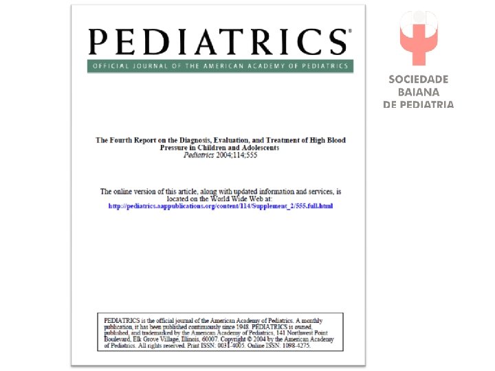 FREQÜÊNCIA DE MONITORIZAÇÃO DA PA CRIANÇAS MENORES DE 3 ANOS: § História de prematuridade, baixo peso ao nascer, e complicações neonatais. § Cardiopatia Congênita § ITU de repetição § Hematúria, proteinuria § Doença renal ou malformação urológica § Historia familiar de doença renal congênita § Uso de medicações que elevam PA § Outras doenças sistemicas associadas a HAS The Fourth Report on the Diagnosis, Evaluation, and Treatment of High Blood Pressure in Children and Adolescents. Pediatrics, 114: 2, 2004