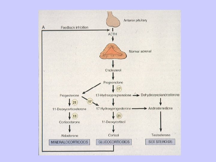 • Patofizyoloji Adrenal korteksden salgılanan başlıca hormonlar kortizol (hidrokortizon), aldosteron ve DHEAS (dehidroepiandrosterone) dur. Yetişkin adrenallerinden günde yaklaşık 20 mg kortizol, 2 mg kortikosteron ve 0. 2 mg aldosteron üretilir. Androjenler primer görevlerini vücutta testosterona dehidrotestosterona çevrildikten sonra yerine getirirler.