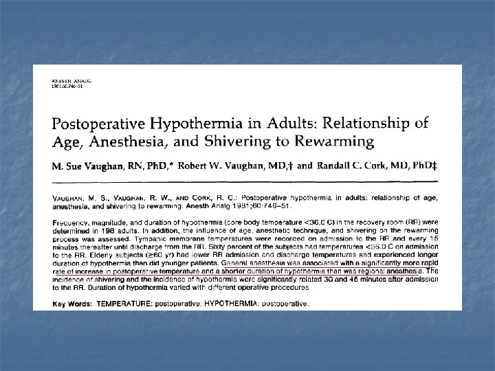 Prevenção da hipotermia peri-operatória n Aquecimento pré-operatório n Aquecimento intra-operatório n Aquecimento pós-operatório
