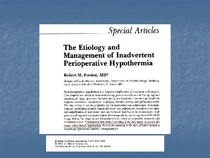 Hipotermia: Causas, riscos e custos Causas de Hipotermia Efeito anestésico Exposição corporal Temperatura da sala operatória Bissonnette B, Anesthesiology, 1993