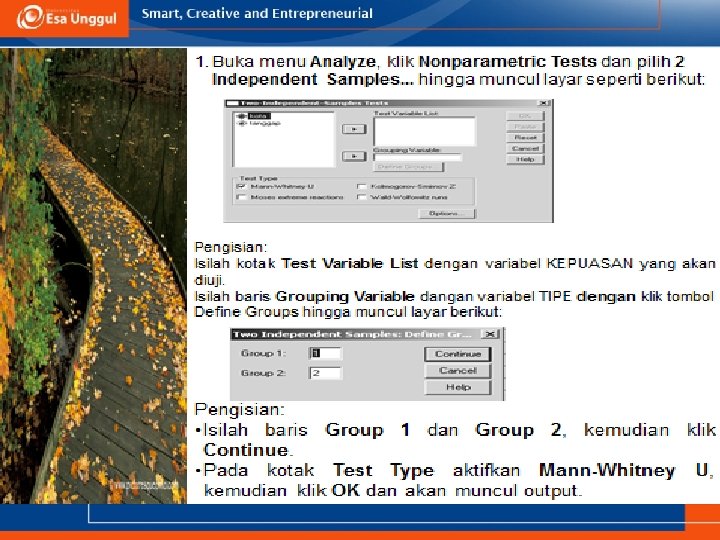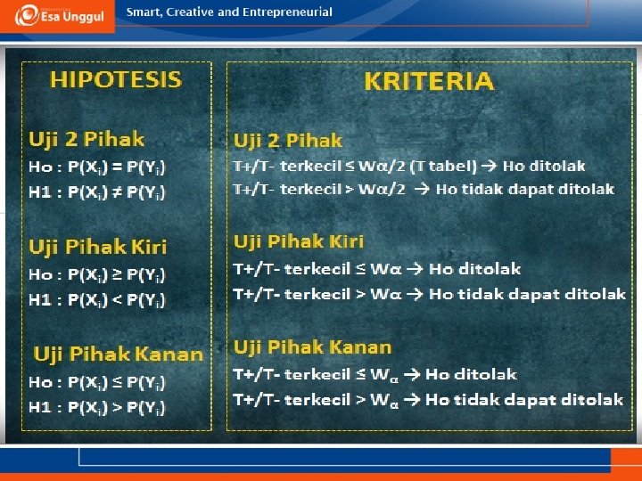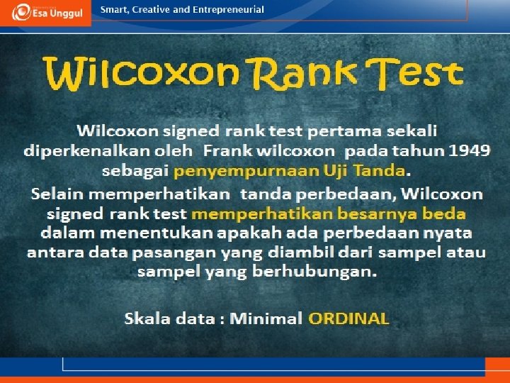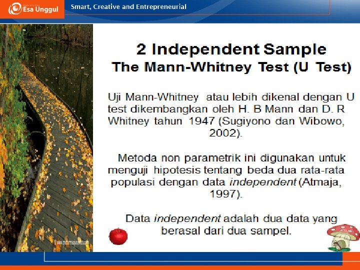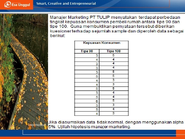 Pengertian Uji T § Sampel di ambil secara acak dari populasi berdistribusi normal. § Data berskala interval dan atau rasio.