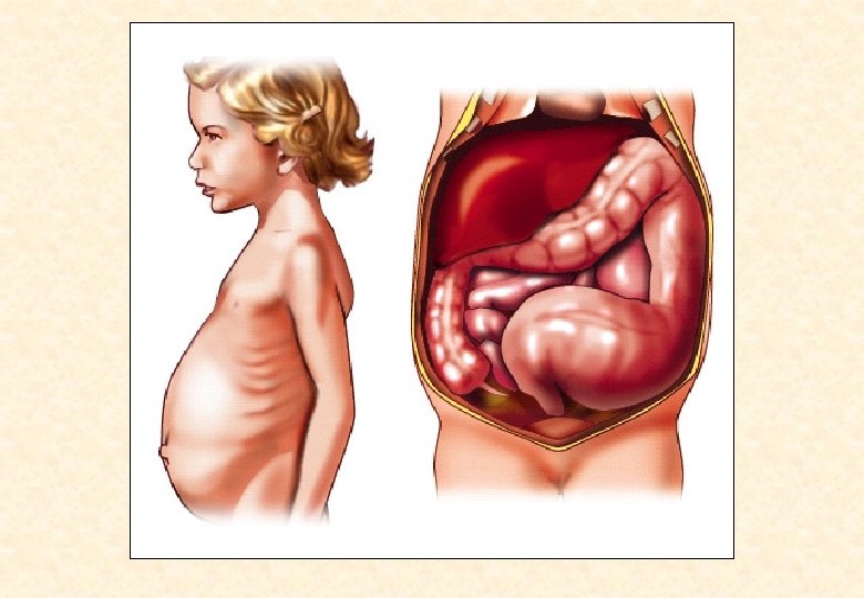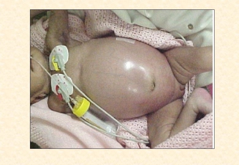 CON’T… • Jika terdapat komplikasi peritonitis tanda edema, bercak-bercak kemerahan di sekitar umbilikus dan punggung serta di area genetalia • Jika dibiarkan dlm wkt lama BB tdk akan bertambah tjd gangguan pertumbuhan