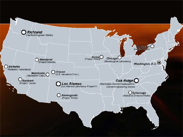Manhattan Project • WWII, Germans spend a lot on weapon research. • In 1942, the USA sets up the Manhattan Project. • “Manhattan Project” was the code name for the creation of an atom bomb. The “Gadget” – before the trinity test. • $2 billion was spent and 600, 000 people were employed.