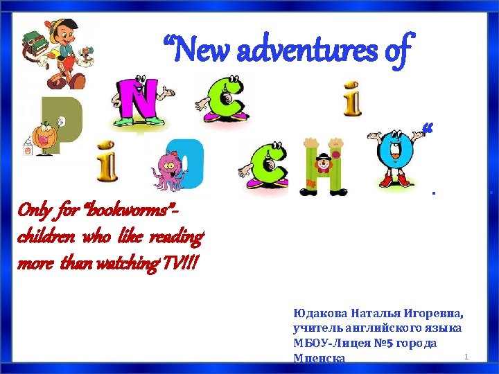 Pinocchio is a kind clever boy. Now Pinocchio is a clever boy. He has not got a big family, but he has a lot of friends. They go to school together. Pinocchio gets up early, at seven o’clock. He goes to school five days a week: on Monday, Tuesday, Wednesday, Thursday, Friday. He can read, write, translate from English into Russian and count very well. He gets only good marks. His favourite books are fairytales. 4