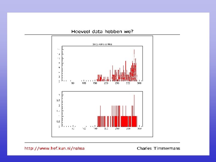 Wat is de rol van de scholen? • Een school zorgt voor een detector • Dus: zorgt dat er data genomen wordt, en dat die data betrouwbaar is • Leerlingen doen mee met de analyse van de resultaten; en met raporteren van het resultaat.
