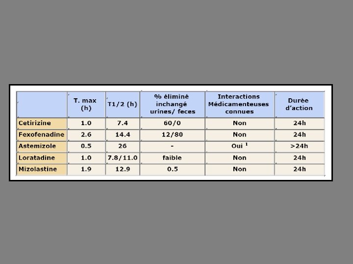 Classement En fonction de leur ancienneté et de leur effet sur la vigilance: les anciens, les sédatifs, et les nouveaux, non sédatifs Soit en fonction de l’existence ou non d’un effet parallèle atropinique. Anti H 1 sédatifs: les anciens antihistaminiques commercialisés sont, la prométhazine, l’alimémazine, la dexchlorphéniramine, la bromphéniramine, la buclizine, la carbinoxamine et la doxylamine. Ils sont sédatifs et provoquent une somnolence qui peut être gênante. Anti H 1 non sédatifs: les deux premiers antihistaminiques sans effet sédatif commercialisés ont été la terfénadine et l’astémizole. Ont été retirés du marché car à l’origine de troubles de la conduction cardiaque.