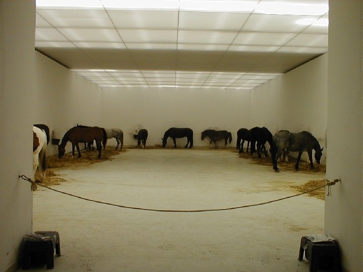Jannis Kounellis, 1969, Galerie à Rome, Installation de 11 chevaux vivants - but: contrer la vision statique et inerte d'un « art bien rangé » dans les espaces qui traditionnellement l'accueillent : musées, galeries. . . - sa proposition est dynamique, elle remet en question l'idée de lieu pour une œuvre, ouvre la voie à l'in-situ - refuse de laisser des traces utilisables par le marché de l'art, tout en sollicitant la participation du public - propose un objet « anti-artistique »