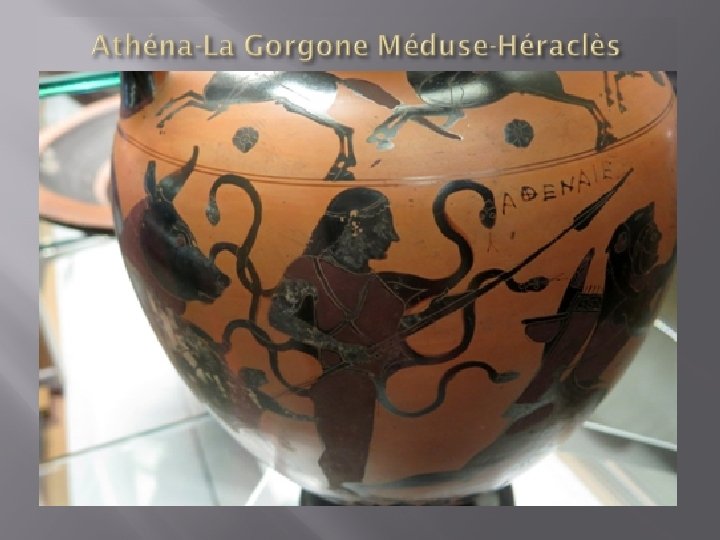 Etudier une céramique c’est : comprendre son message. Scènes mythologiques : Héraclès et le lion de Némée, Ulysse et les sirènes. L’artiste célèbre ici le courage, la puissance et la ruse.