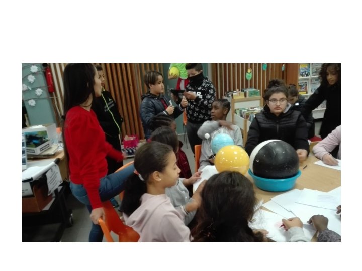 Comment expliquer les phases de la Lune Nous avons utilisé une boule en polystyrène dont la moitié est peine en noir. Chacun des élèves doit dessiner ce qu’il voit depuis sa place. Résultat chacun voit une phase différente.