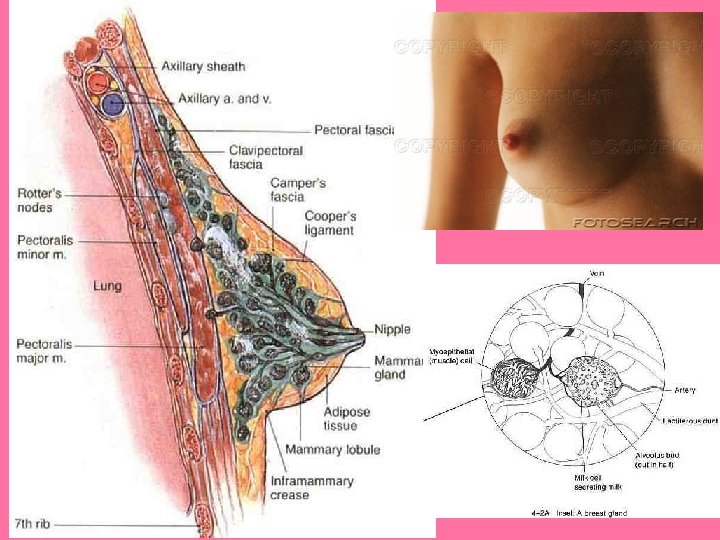 • Conductos galactóforos: – 20 se abren en punta del pezón – Son conductos excretores de los lóbulos mamarios