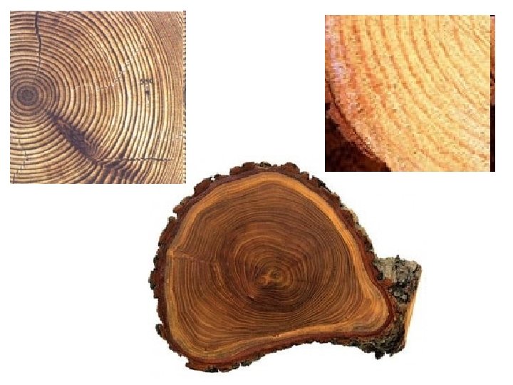 Madeira • Xilema secundário – Coníferas: traqueídes – Angiosperma: elementos de vaso • Zonas concêntricas sucessivas: anéis de crescimento – Madeiras de regiões temperadas – anéis anuais – Anéis: reflexos de diferentes taxas de crescimento em espessura – temperatura, água, etc. – Xilema inicial (primaveril) + xilema tardio (estival) (menos denso) (mais denso)