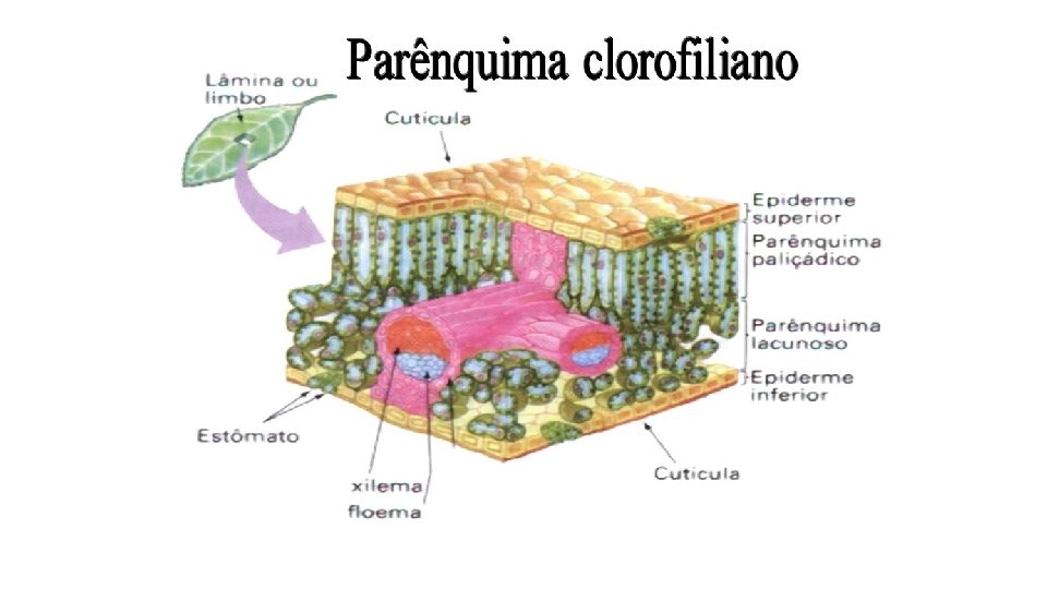 Tecidos parenquimáticos (parênquimas) • Pode ser encontrado em todos os órgãos da planta como um tecido contínuo de preenchimento • As células são vivas, com forma variável e, às vezes, com funções específicas • Principais tipos: clorofiliano e de reserva
