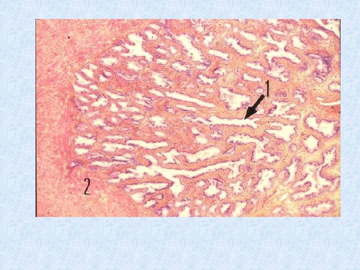 URETRE PROSTATIQUE : 1 -Epithélium paramalpighien 2 -Glandes tubulo-alvéolaires