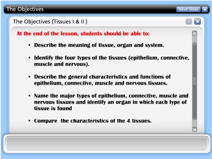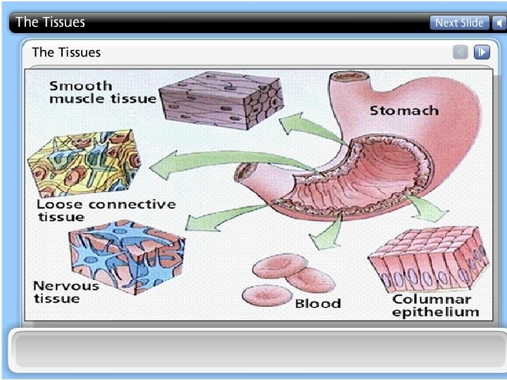 Histology : It is the science which deals with the microstructures of tissues and organs. The tissues • A basic tissue type is a group of similar cell and able to perform a common function. • Our body is composed of only four basic tissue types: Types of tissues Epithelial tissue Connective tissue Muscular tissue Nervous tissue