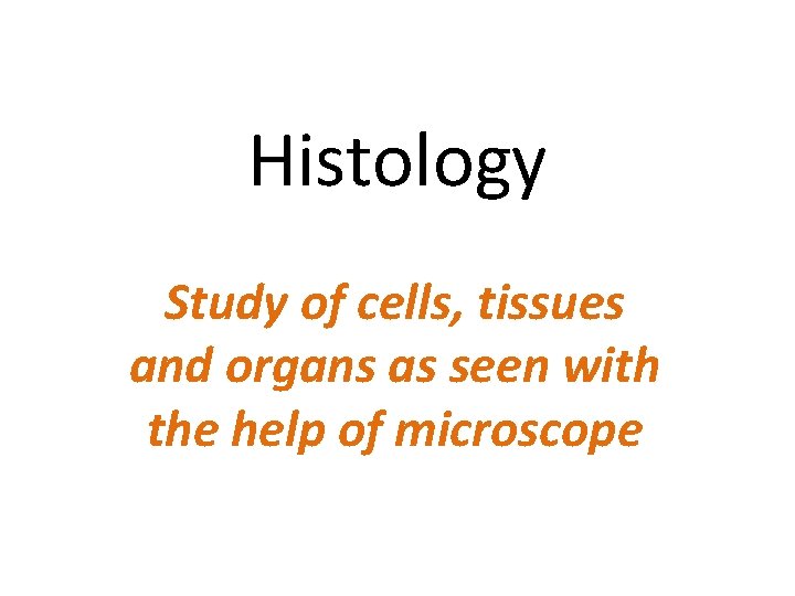 Histology Study of cells, tissues and organs as seen with the help of microscope