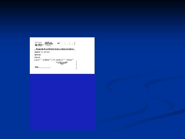 REQUISITOS de la HISTORIA CLINICA n INTELIGIBILIDAD: Letra legible. n Abreviaturas de uso común. n n CALIDAD: Terminología científica. n Anamnesis cuidadosa. n Exploración física completa. n Registro de pruebas, tratamientos y procedimientos realizados. n
