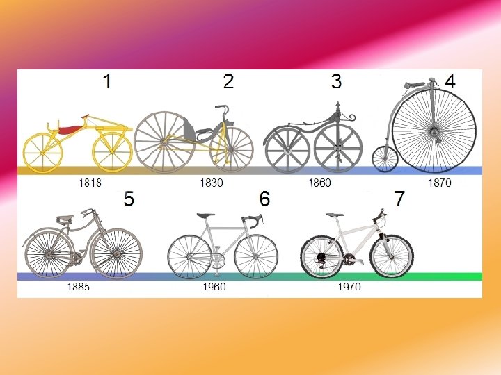 PRZYKŁADY ROWERÓW Welocyped – pierwotny rower nieposiadający łańcucha ani hamulców, często z bardzo dużym kołem przednim oraz z małym kołem tylnym (bicykl), niekiedy z dwoma kołami tylnymi (tricykl). Pojazdy te najczęściej były napędzane pedałami osadzonymi na osi przedniego koła.