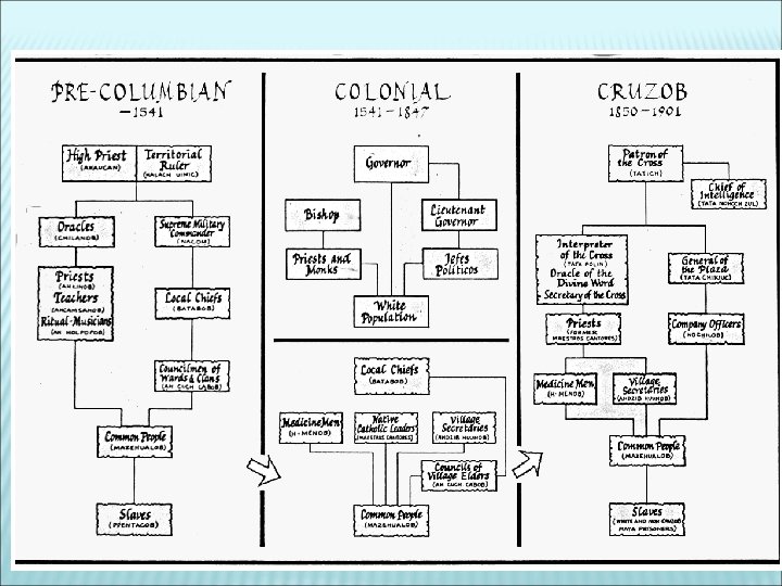 Maya Revitalization Movement � The Maya created a state focused upon a wooden cross located next to a well. This cross spoke, and its statements were interpreted by an oracle. � The Maya created a state with a center at Chan Santa Cruz “Little Holy Cross. ” They housed the cross in a building called the X Balam Na, the “Place of the Jaguar. ” They were called the Cruzob “Those of the Cross.