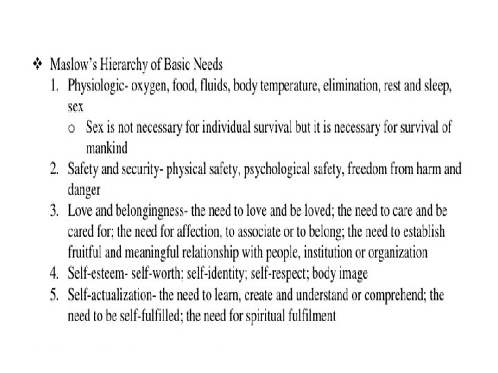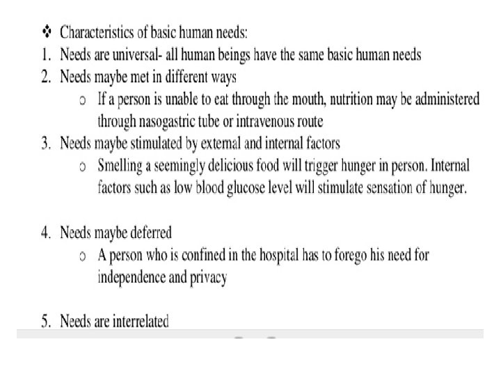 • Nursing is holistic. • Nursing is adaptive. • Nursing is concerned with health promotion, health maintenance, and health restoration. • Nursing is a helping profession. 10