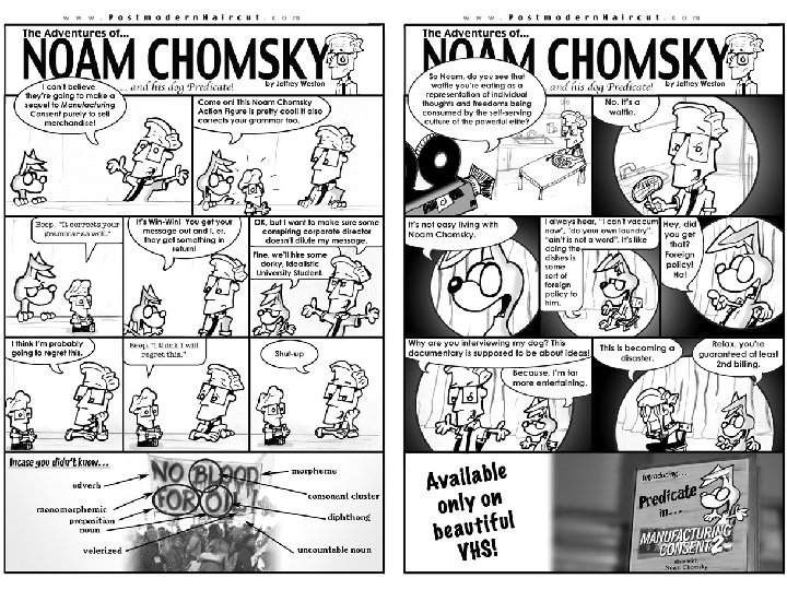 Historical Perspectives Noam Chomsky (1928 -) • Linguist, philosopher, cognitive scientist, political activist, dissident, author • Father of modern liguistics • Pioneered formal languages • Developed generative grammars Invented context-free grammars • Defined the Chomsky hierarchy • Influenced cognitive psychology, philosophy of language and mind • Chomskyan linguistics, Chomskyan syntax, Chomskyan models • Critic of U. S. foreign policy • Most widely cited living scholar Eighth most-cited source overall!