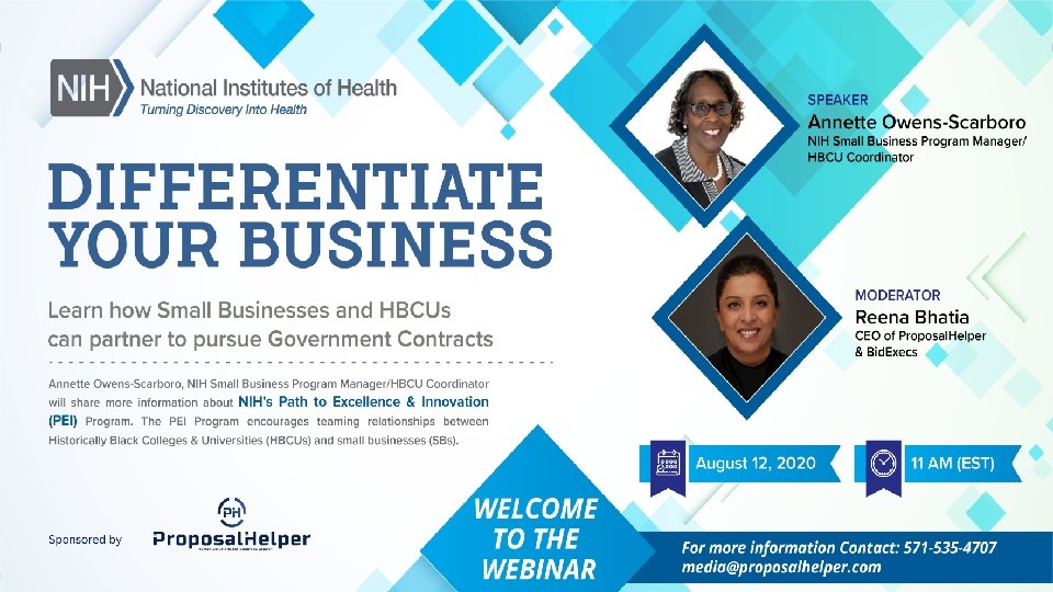 Historically Black Colleges and Universities and The Path to Excellence and Innovation Initiative Annette Owens-Scarboro NIH Small Business Program Manager/HBCU Coordinator 8/12/2020