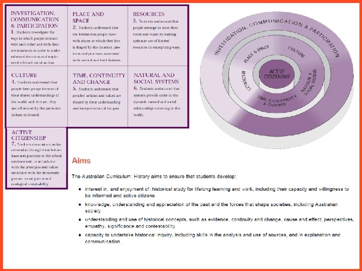 SILENT CARD SHUFFLE 1. With your partner/group lay out the cards from your envelope on the table in front of you. 2. In silence work together to arrange the History Australian Curriculum examples with their correct headings. 3. When you have match up all cards in silence talk together explaining, justifying, clarifying and rearranging your cards until you think you have matched them up correctly. Which ones were easy? Which ones were hard? Were you surprised?