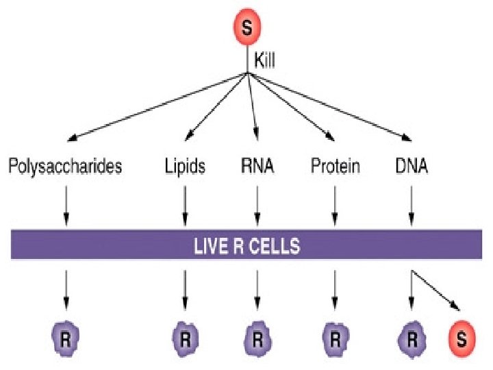 IV) Oswald Avery, Maclyn Mc. Carty, & Colin Mac. Leod A) Used DNAdestroying & protein- destroying enzymes to show DNA was the transforming agent in Griffith’s experiment 1944