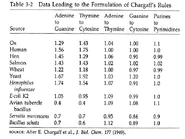 VII) Erwin Chargaff A) Looked for patterns in the chemical composition of DNA B) Analyzed four chemicals found in DNA: Adenine, Cytosine, Guanine, & Thymine Early 1950’s