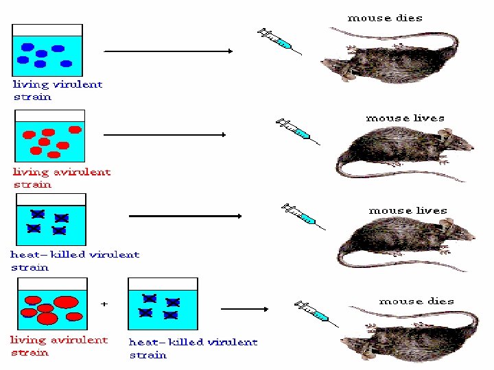 III) Frederick Griffith A)Used Strep. pneumoniae to push favor towards DNA being the genetic material of choice 1928