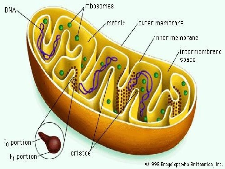 § Oxysomes are attached to the IM through factor called (OSCP) Oligomycin Sensitivity Confaring Protein. § The cristae space (formed by infoldings of the inner membrane) – F 1 particles or oxysomes to produce ATP. § F 0 -Hydrophobic protein and proton channel & embedded in the inner membrane. F 1 - 5 types of hydrophilic proteins and towards mitochondrial matrix. § The matrix (space within the inner membrane) - Enzymes, special mitochondrial 70 S ribosomes, But in Mammalian 55 S Type, t. RNA, proteins 70%, lipids 30% and several copies of the mitochondrial DNA genome, respiratory enzymes, the major functions include oxidation of pyruvate and fatty acids, and the citric acid cycle § Mitochondria stripped of their outer membrane are called mitoplasts. § A group of Mitochondria called Chondriosome. § In Scurvy diseases all Mitochondria fuse together called Chondriospere.