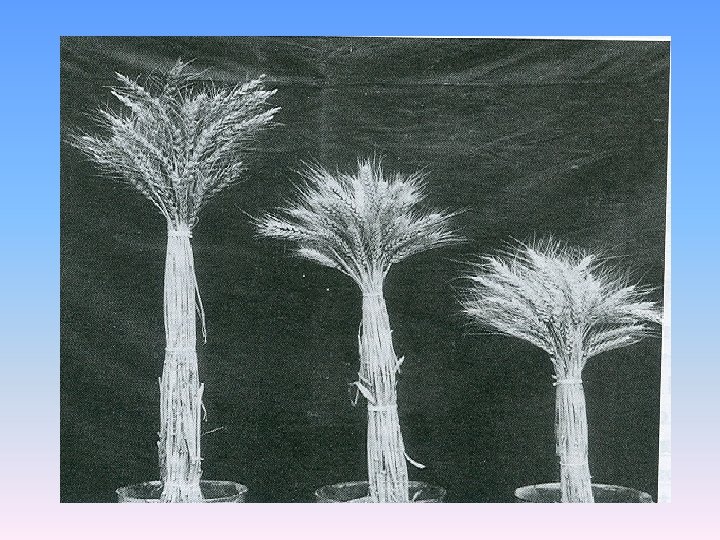 Dwarf Varieties HYV winter wheat – Russian Scientist -PP Lukyanenko developed: – Bezostya – Kavkag & – Avrora Great Britain Little Joss (142 cm. ) in 1908 Holdfast (126 cm. ) in 1935 Capelle Desperz (110 cm) in 1935 Marris Huntman (106 cm) in 1972 Armada (97 cm) in 1978 USA Honor (120 cm) in 1920 Eroga (85 cm. ) in 1973 Did not havea robust source for dwarfing but succeeded in improving wheat yield over a long period in Western world