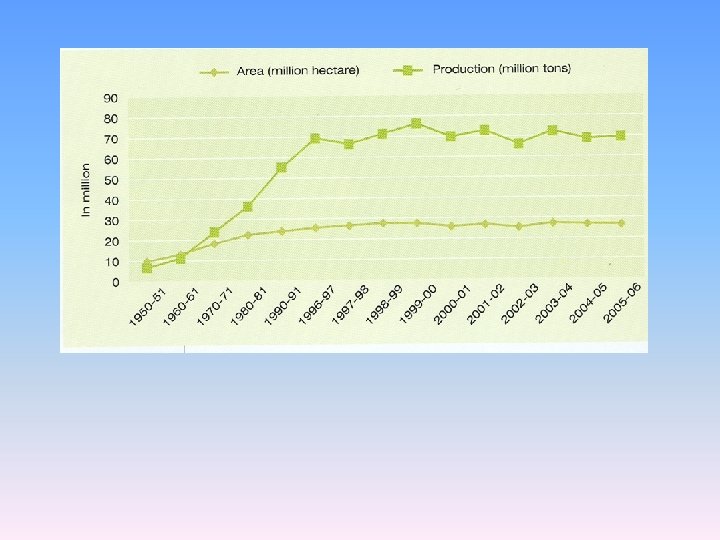 Wheat Yield in India ___________________ Year Yield ___________________ • • • 1950 -51 : 6. 46 MT 1960 -61 : 11 MT 1963 -64 1965 -66: 10. 4 MT 1970 -71: 21. 8 MT- 663 kg/ha 851 kg/ha 734 kg/ha 827 kg/ha 1172 kg/ha • Increase in yield not consistent