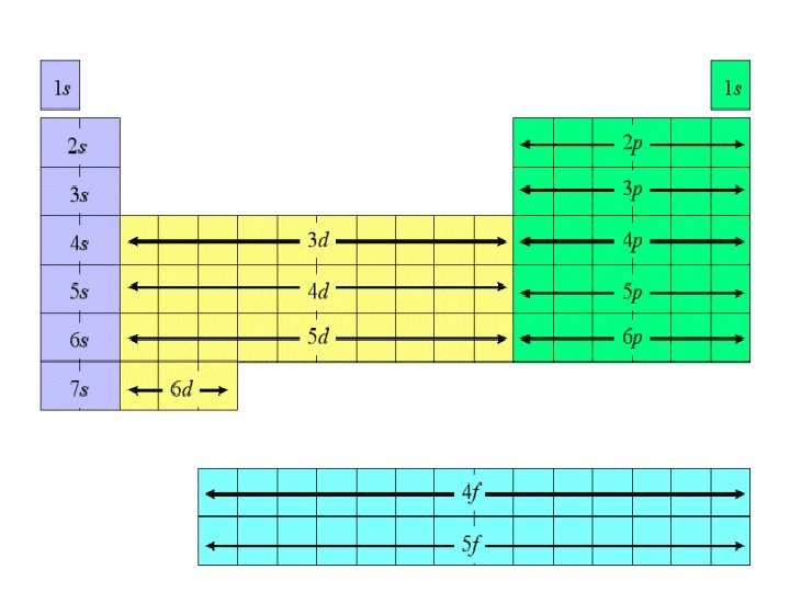 The Periodic Table s 1 1 2 3 4 5 6 7 s 2 d 1 d 2 d 3 d 4 d 5 d 6 d 7 d 8 d 9 d 10 p 1 p 2 p 3 p 4 p 5 p 6 1 2 H He 3 4 Li Be 11 12 Na Mg 19 20 5 6 7 8 B C N O F Ne 13 14 15 16 17 P S 33 34 Al Si 21 22 23 24 25 26 27 28 29 30 31 32 9 10 18 Cl Ar 35 36 K Ca Sc Ti V Cr Mn Fe Co Ni Cu Zn Ga Ge As Se Br Kr 37 38 39 40 41 42 43 44 45 46 47 48 49 50 51 52 Rb Sr Y Zr Nb Mo Tc Ru Rh Pd Ag Cd In Sn Sb Te 55 56 57 72 73 74 75 76 77 78 Cs Ba La Hf Ta W Re Os Ir 87 88 89 104 105 106 107 108 79 80 81 d p f 83 84 54 I Xe 85 86 Pt Au Hg Tl Pb Bi Po At Rn 109 110 111 114 116 118 Uuq Uuh Uuo 112 Fr Ra Ac Rf Db Sg Bh Hs Mt Uun Uuu Uub s 82 53 f 1 f 2 f 3 f 4 f 5 f 6 f 7 f 8 f 9 f 1 f 1 f 1 4 5 58 59 60 61 62 63 64 65 66 067 168 269 370 471 Ce Pr Nd Pm Sm Eu Gd Tb Dy Ho Er Tm Yb Lu 90 91 92 93 94 95 96 97 98 99 100 101 102 103 Th Pa U Np Pu Am Cm Bk Cf Es Fm Md No Lr