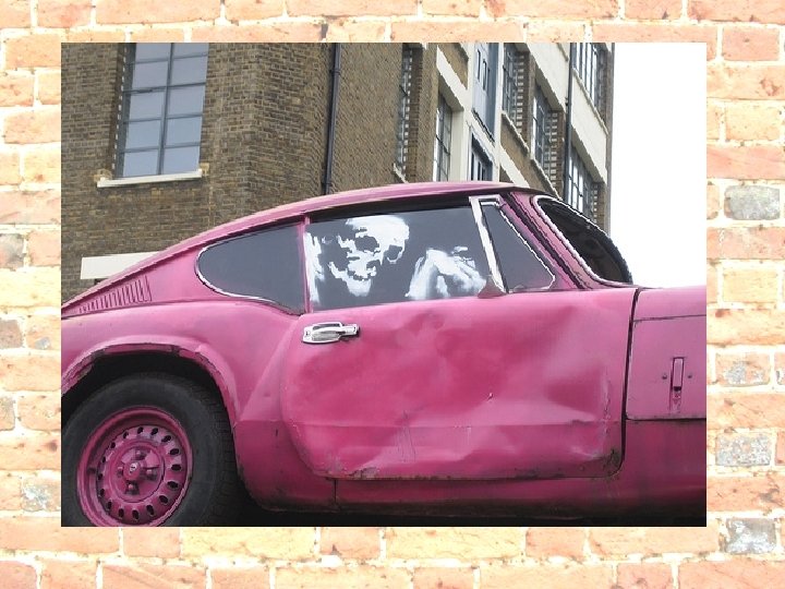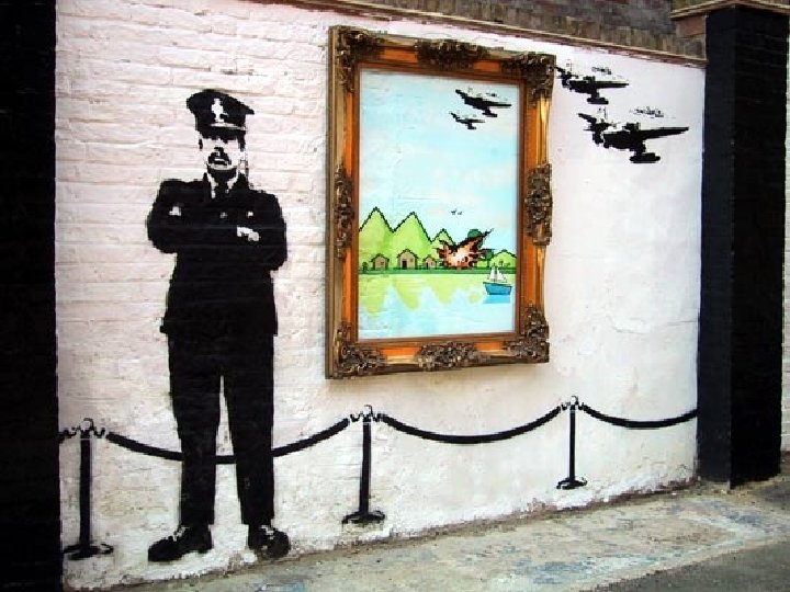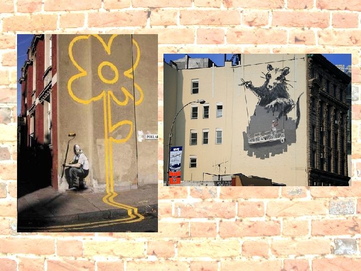 In Britain we have a very active graffiti world and one of the most famous artists is Banksy, an urban terrorist who creates funny, thought provoking graffiti and images in very unusual places as well as on walls